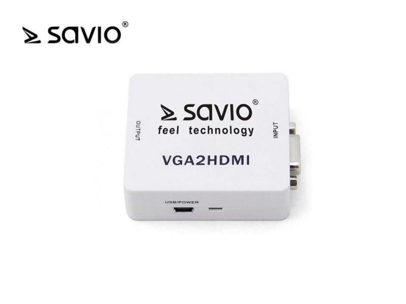 Adapter/Konwerter VGA Savio CL-110 VGA (F)+minijack(F) - HDMI A/F Full HD/1080p 60Hz
