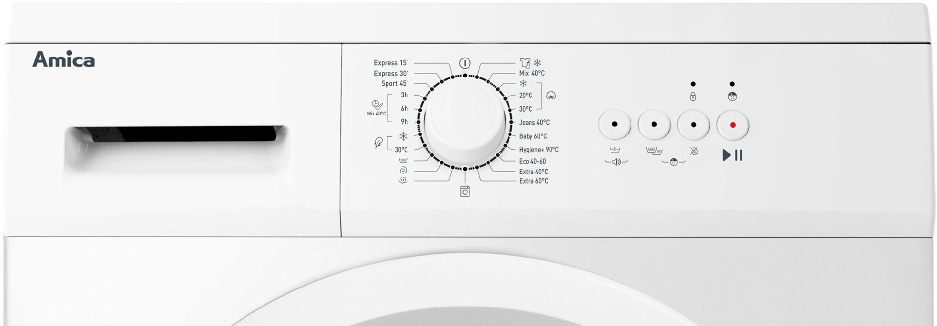 | Programy prania | Szybki 30 min Higiena Wirowanie Sport Eco 40-60 Płukanie Odświeżanie 15' Bawełna 20°C Syntetyk Mix 40°C Delikatne Czyszczenie bębna Bawełna Baby Pro |